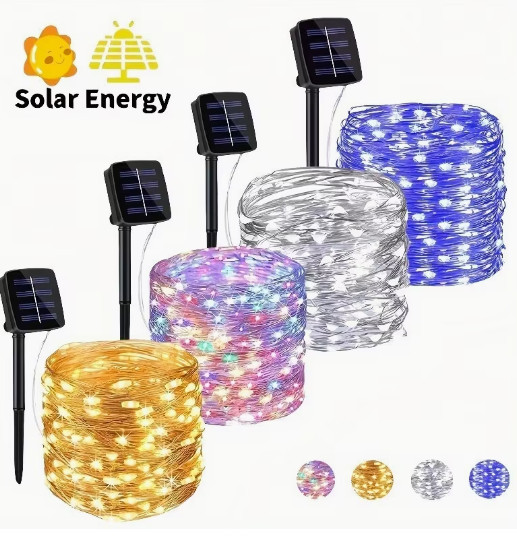 10 M - 100 LED-es napelemes kültéri tündérfények, alkalmasak minden évszakhoz, 8 módos napelemes IP54 kiváló minőségű ezüst fények kerítéshez, kertbe, teraszra, karácsonyfához, partihoz, ünnepihez, esküvői dekorációhoz 11 fesztiválhoz, fények 6 szobához