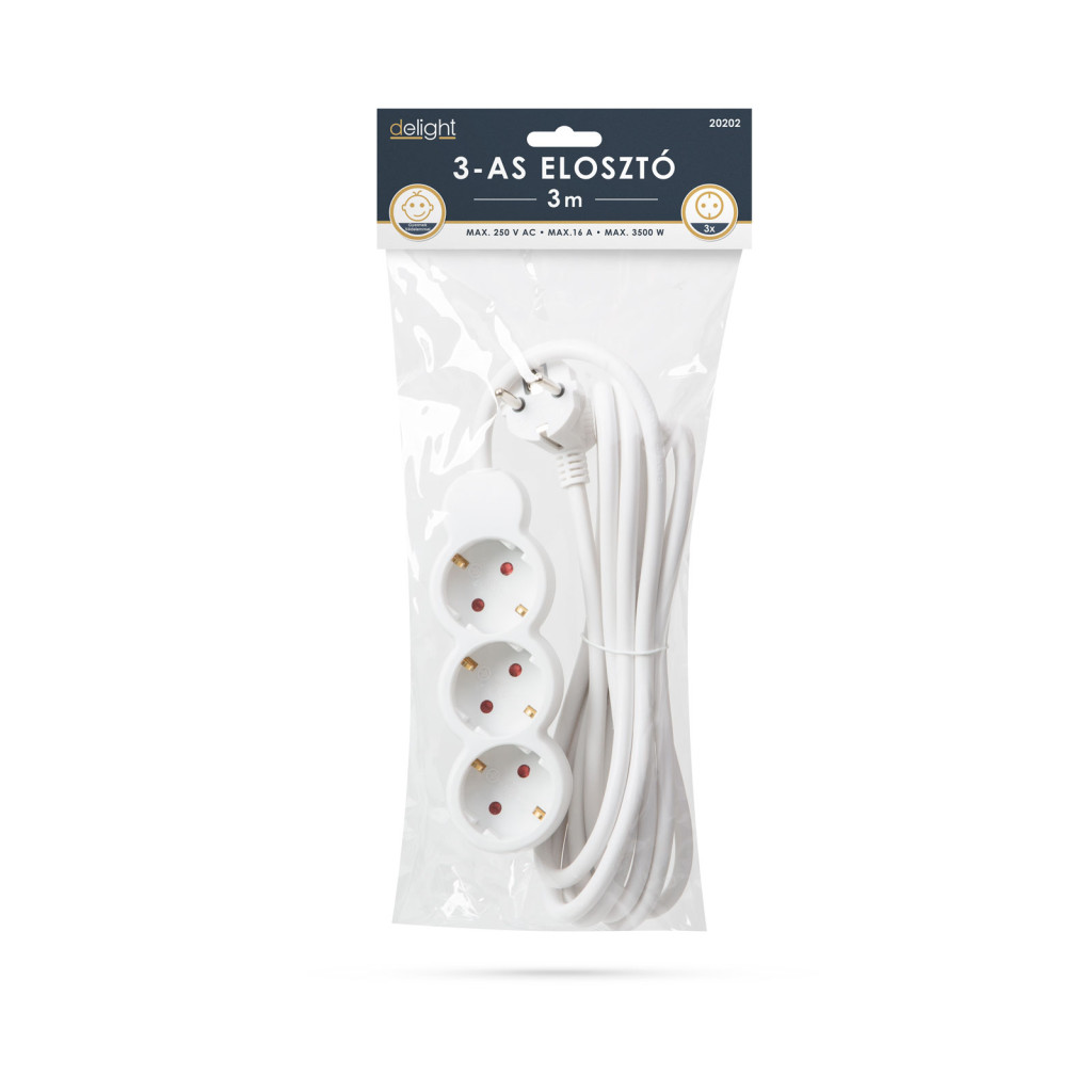 Általános, fehér elosztó, amely használata javasolt háztartásban, irodákban. Jó minőségű, vastag szigetelése megvédi a kábelt a sérülésektől, a kábel esetleges megtörésétől.