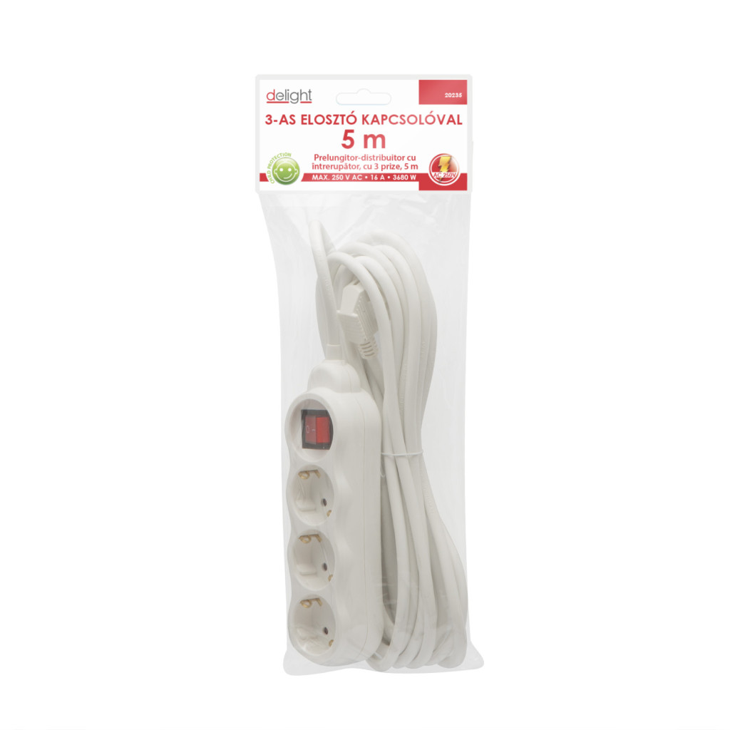 Általános, fehér elosztó kapcsolóval, amely használata javasolt háztartásban, irodákban. Jó minőségű, vastag szigetelése megvédi a kábelt a sérülésektől, a kábel esetleges megtörésétől.