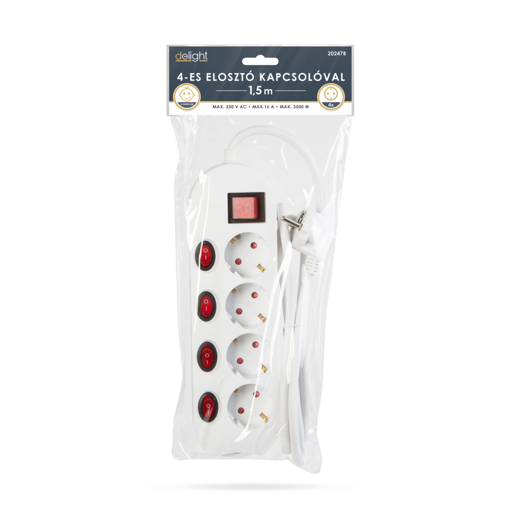 4-es elosztó - 4+1 kapcsolóval - 250 V • 16 A - 1,5 m