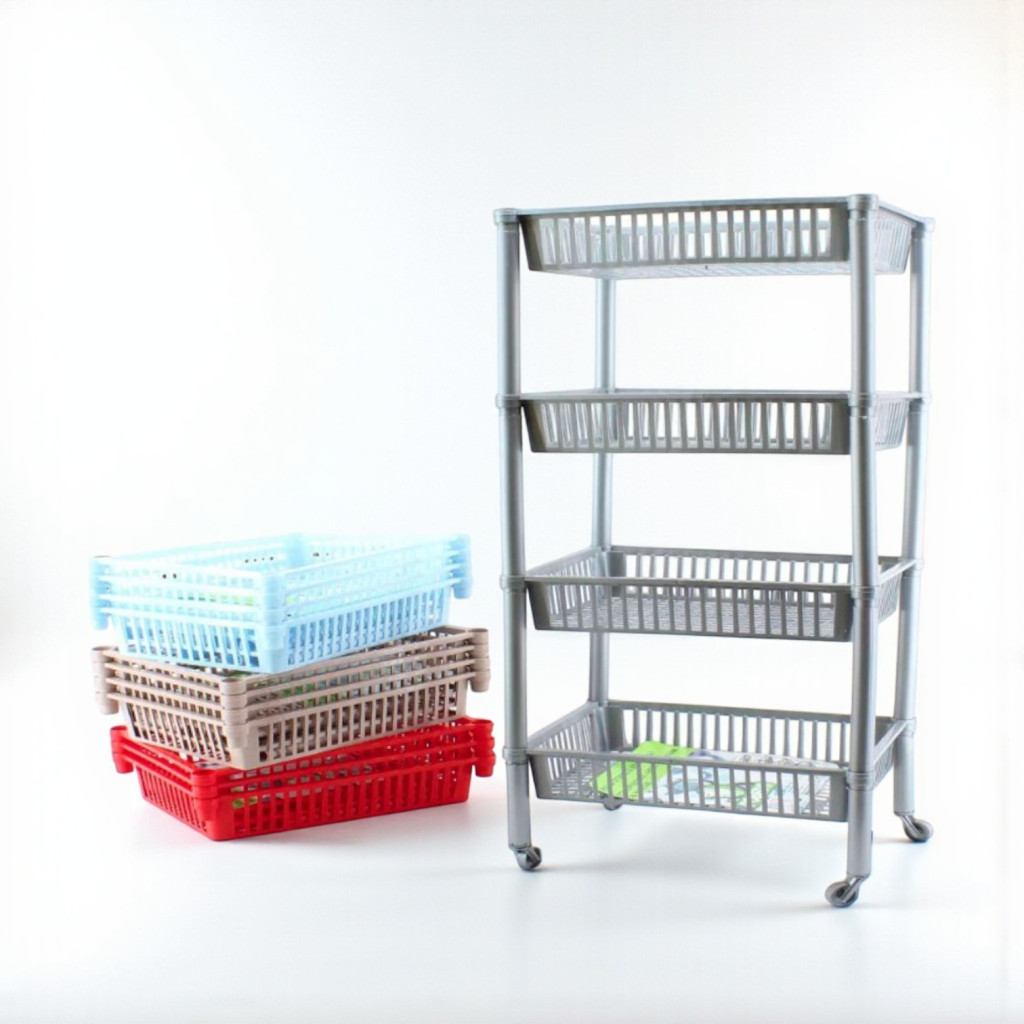 A 4 részes gurulós polc praktikus és sokoldalú tárolómegoldás otthonra. Könnyű szerkezete és gurulós kialakítása lehetővé teszi, hogy egyszerűen mozgatható legyen, miközben a négy tárolókosár elegendő helyet biztosít a mindennapi használati tárgyak számára. Strapabíró műanyagból készült, így jól bírja a terhelést, könnyen tisztítható és hosszú élettartamú. Ideális választás konyhába, fürdőszobába vagy akár irodába is.