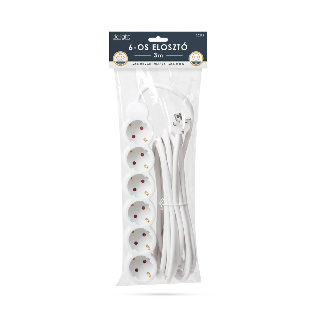 Általános, fehér elosztó, amely használata javasolt háztartásban, irodákban. Jó minőségű, vastag szigetelése megvédi a kábelt a sérülésektől, a kábel esetleges megtörésétől.