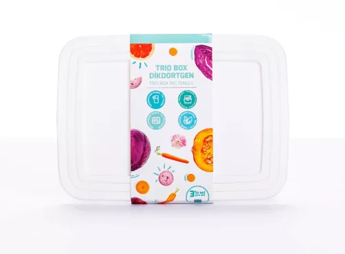Három részes műanyag tárolódoboz tetővel. -25 foktól 95 fokig hőálló. Mosogatógépben mosható. A szett tartalmaz 1 darab 750 ml, 1 darab 1000 ml, 1 db 1500 ml