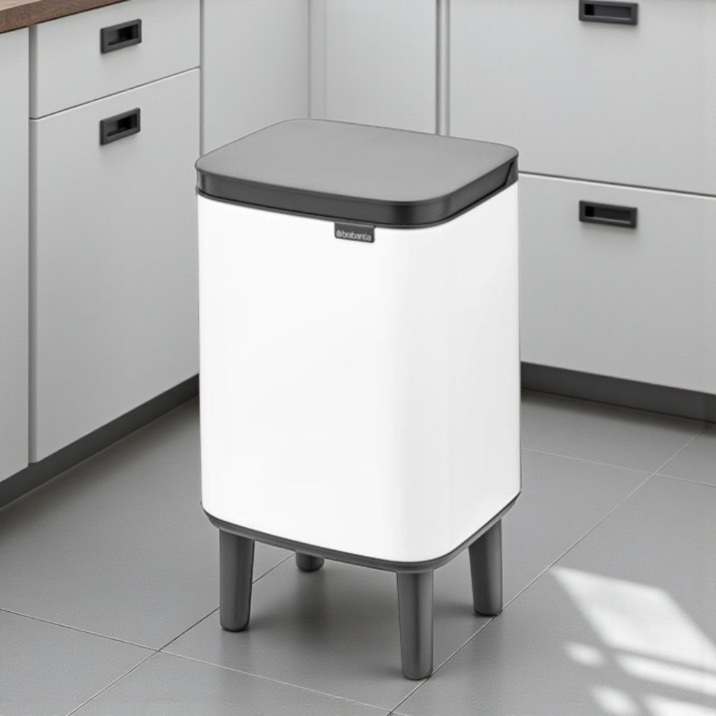A Brabantia Bo Waste Bin Hi 7 L elegáns, fehér acél szemetes, amely tökéletes kisebb helyiségekbe. Soft-Close fedélrendszere halk és könnyű használatot biztosít, belső műanyag vödre kivehető a higiénikus tisztításért. Stabil lábakon áll, csúszásmentes aljjal, falhoz illeszthető kialakítással. Stílusos, praktikus és tartós választás otthonra vagy irodába.