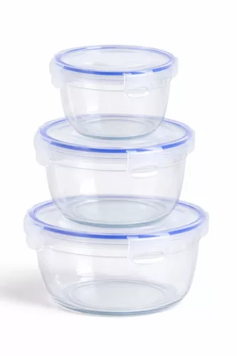 Kiváló minőségű konyhai eszköz, amely pattintható fülekkel záródik. A szett 3 különböző méretű, patentzáras, átlátszó műanyag dobozt tartalmaz. A dobozok méretei jellemzően 625 ml, 1200 ml és 2100 ml. Mosogatógépben használható.