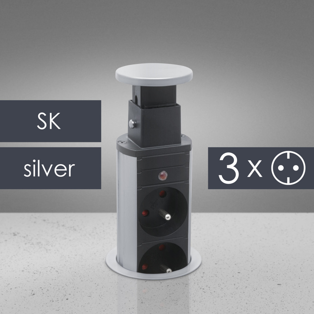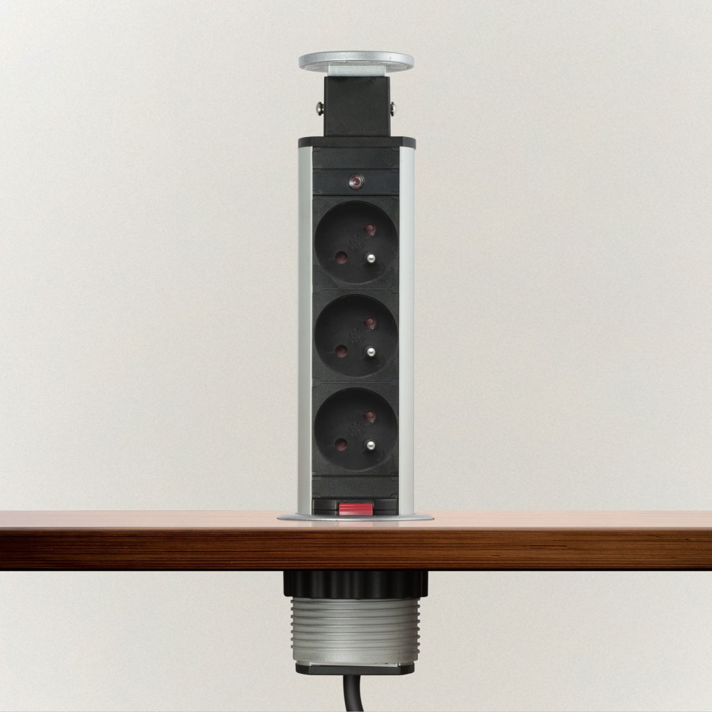 Süllyeszthető elosztó irodai és otthoni felhasználásra, fém házzal. Asztala, bútora legyen mindig elegáns és rendezett, mégis funkcionális. 3 db gyermekvédelemmel ellátott aljzattal. A rejtett elosztó kiváló megoldás lehet ha már például kész konyhával rendelkezik, de nincs elegendő konnektor a kívánt helyen. Ilyenkor falvésés és villamos hálózat bővítés nélkül, remek alternatíva lehet egy rejtett elosztó. Egy mozdulat és máris rendelkezésre áll 3 szabad konnektor. Ideális lehet olyan elektromos eszközökhöz, amit nem folyamatosan használunk, kenyérpirító, vízforraló... Ha használaton kívül vannak, a "töltőoszlop" egy mozdulattal elrejthető, ezzel is megkönnyítve például a takarítást, valamint rendezett, letisztult külsőt ad a helységnek.