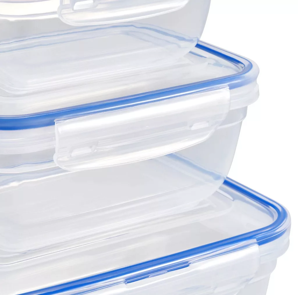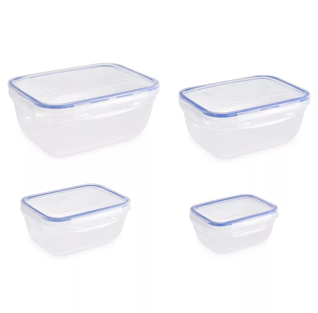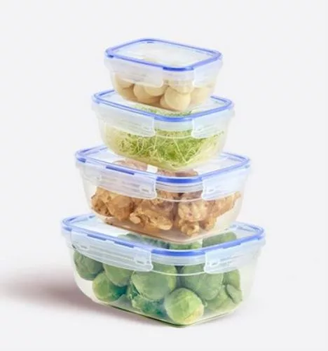 Ez a négy darabból álló, átlátszó műanyag ételtároló szett ideális választás a mindennapi konyhai rendszerezéshez. A különböző méretű dobozok egymásra rakhatók, így helytakarékosan tárolhatók, miközben a kék színű, szorosan záródó tetők gondoskodnak az ételek frissességéről. A tetők szorosan záródnak, így utazáshoz is ideális. Többféle méretű: a fokhagymától a sült húsig mindenhez ideális választás. Mivel egymásra rakható, így helytakarékos megoldás hűtőben és szekrényben egyaránt. Mosogatógépben és mikróban is használható. Ez a szett segít megőrizni az ételek minőségét és frissességét. A szett 4db dobozt tartalmaz melynek méretei: 0,4 L, 0,8 L , 1,4 L , 2,3 L