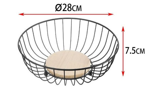 GYÜMÖLCSKOSÁR FÉM FEKETE, FA ALJÚ 28X7,5CM