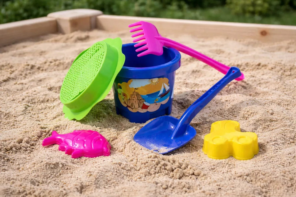 Tartalom: vödör, lapát, gereblye, formák, szita