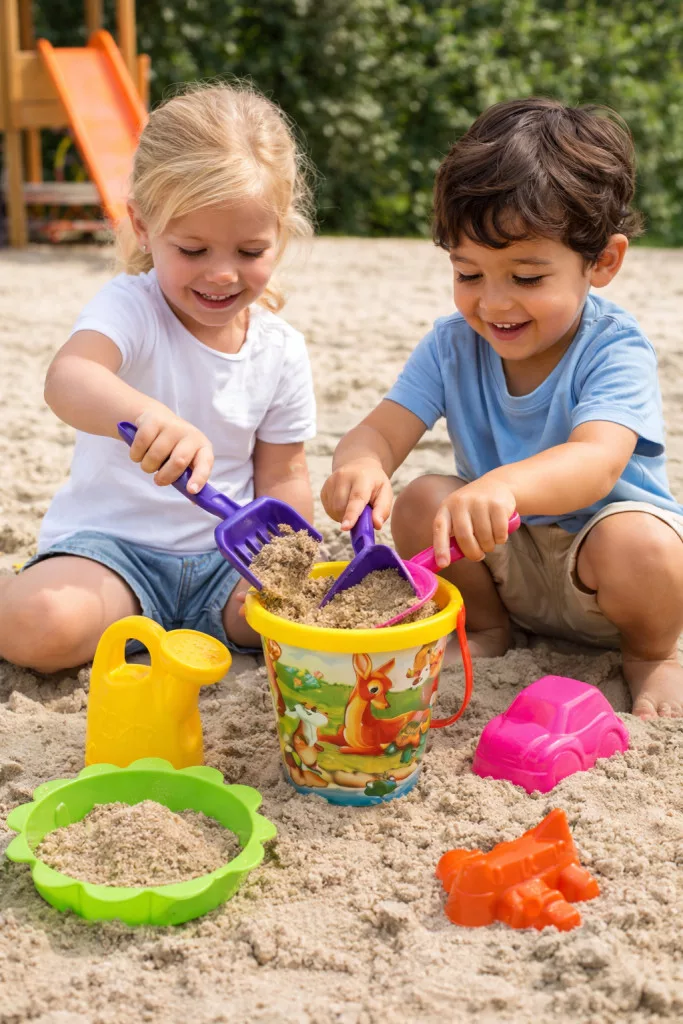 Ebben a homokozó szettben most minden kis gyermek megtalálhatja a neki való szerszámot, legyen szó egy lapátról, vagy akár egy formáról. A készlet tartalmaz egy vödörre illeszthető szitát is mely a homokban található nagyobb darabokat hivatott kiszűrni. A készlet alkalmas a legbonyolultabb homokvár, vagy néhány egyszerűbb forma kialakítására is. Az erős műanyag alapanyagoknak köszönhetően sokáig ellenáll az időjárási viszontagságoknak, így nem lesz baj belőle ha esetleg kint felejtik a szabadban. Az erős színek vonzóbbá teszik a játékot gyermek számára. Mérete: 18X20X32 cm