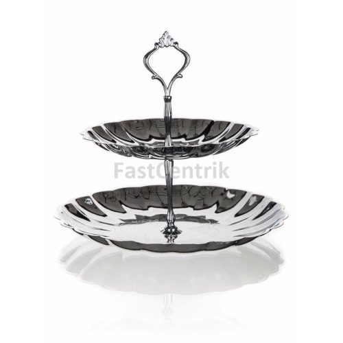 Kétemeletes, elegáns krómozott kínálótál, melyen remekül fog mutatni minden sütemény.