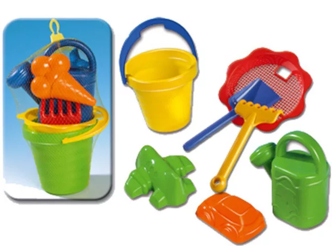 Ezzel a szuper 7 db-os homokozó szettel szárnyalhat a képzelő erő. Kiváló játék kisgyerekeknek a strandron, a homokóban vagy akár a kertben. A termékek színe eltérhet a képen látottaktól. Méret: 21x23x43 cm