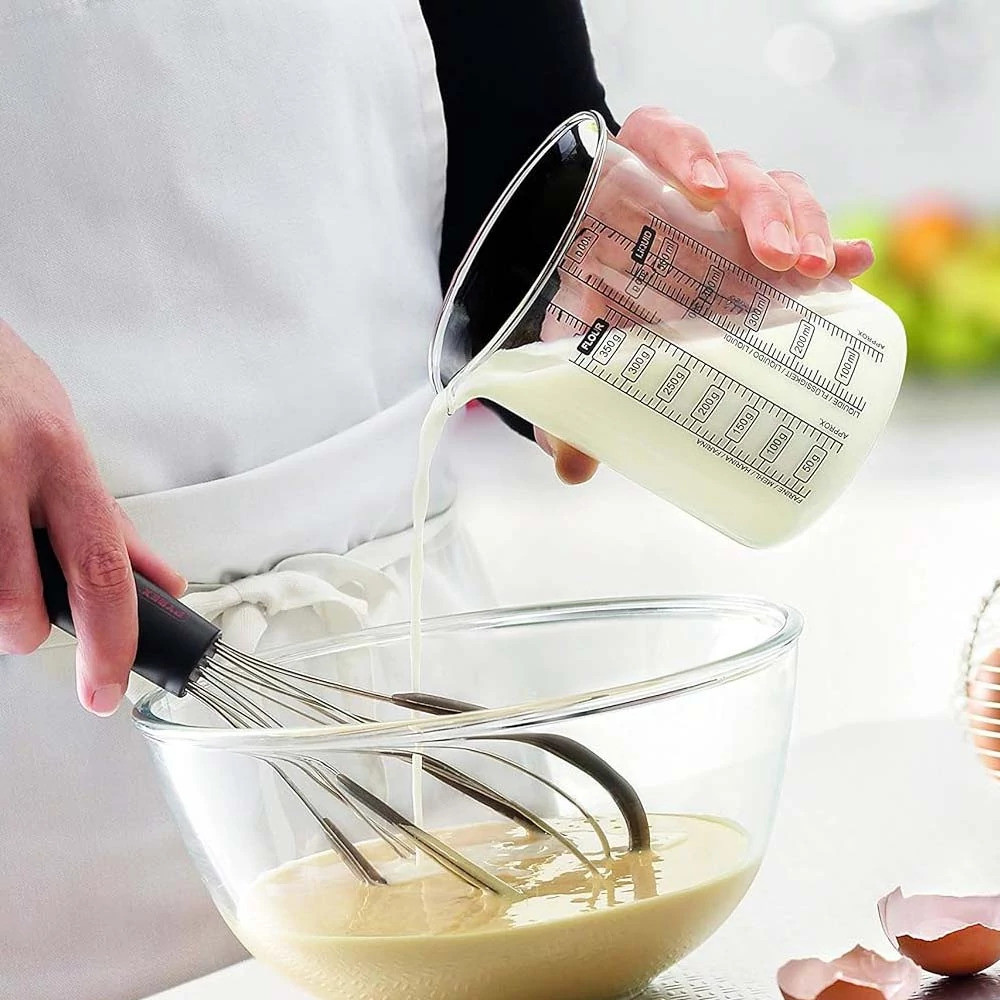 A Pyrex mércés pohár 0,5 l hőálló boroszilikát üvegből készült, 10×12 cm-es kialakítással. A kiöntős kivitel és jól látható mérce­skála pontos adagolást tesz lehetővé. Tökéletes választás konyhai előkészületekhez, sütéshez és folyadékmérésekhez. –40 °C és +300 °C között használható, és mosogatógépben is tisztítható.