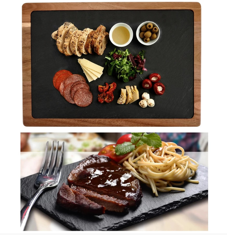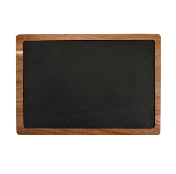 Emeld a tálalás élményét ezzel az akáciafából és natúr fekete palából készült kínálóval, amely elegáns, természetes megjelenésével bármilyen asztalt díszít! A pala lap mérete ~30×20×0,5 cm (~900 g), míg a tartó ~33×23×1,5 cm (~450 g). Sokoldalúan használható: steaktálként, sajttálként, előétel- vagy desszertkínálóként, pizzatáblaként, uzsonnás vagy sushi tálként is megállja a helyét. Minden darab egyedi színárnyalatú és erezetű, hiszen természetes anyagból készül, így a méretek és mintázatok kis mértékben eltérhetnek.Figyelem: ne használd sütőben, mikrohullámú sütőben, mosogatógépben, és ne alkalmazd vágódeszkaként! A termék szélei élesek lehetnek, valamint törékeny, ezért bánj vele óvatosan. Használat után ne hagyd rajta hosszú ideig az ételeket – különösen a savas vagy színes fogásokat – hogy elkerüld az elszíneződést. Időnként kend át extra szűz olívaolajjal, így eltávolíthatod az apró karcokat, és megőrizheted természetes fényét. Ez az akáciafa tartós, natúr fekete pala kínáló a stílus, minőség és természetesség tökéletes összhangját hozza el konyhádba.