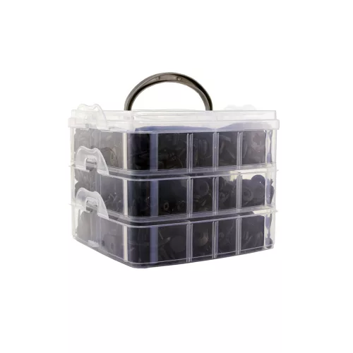 Univerzális szorító patent készlet. Alkalmas a legtöbb autó belső és külső műanyag elemeinek, doblemezeinek rögzítésére. Az erős műanyagból készült patentek hosszú élettartamra lettek tervezve. A készlet összesen 620 db különböző típusú és méretű patentet tartalmaz. A készlet részét képezi továbbá 5 db szerszám is, amely segítségével hatékonyan végezhető el a szerelési munkafolyamat.
