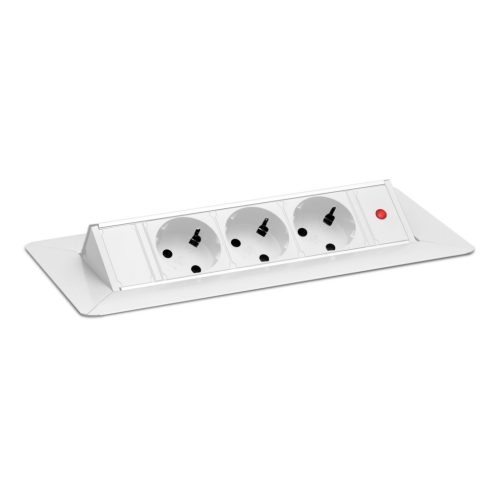 Süllyeszthető elosztó irodai és otthoni felhasználásra, ezüst felülettel, 3 db gyermekvédelemmel ellátott aljzattal. Asztala, bútora legyen mindig elegáns és rendezett, mégis funkcionális. A rejtett elosztó kiváló megoldás lehet ha már például kész konyhával rendelkezik, de nincs elegendő konnektor a kívánt helyen. Ilyenkor falvésés és villamos hálózat bővítés nélkül, remek alternatíva lehet egy rejtett elosztó. Egy mozdulat és máris rendelkezésre áll 3 szabad konnektor. Ideális lehet olyan elektromos eszközökhöz, amit nem folyamatosan használunk, kenyérpirító, vízforraló... Ha használaton kívül vannak, az "flip-up" elosztó egy mozdulattal elrejthető, ezzel is megkönnyítve például a takarítást, valamint rendezett, letisztult külsőt ad a helységnek.