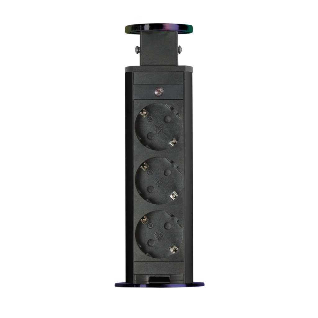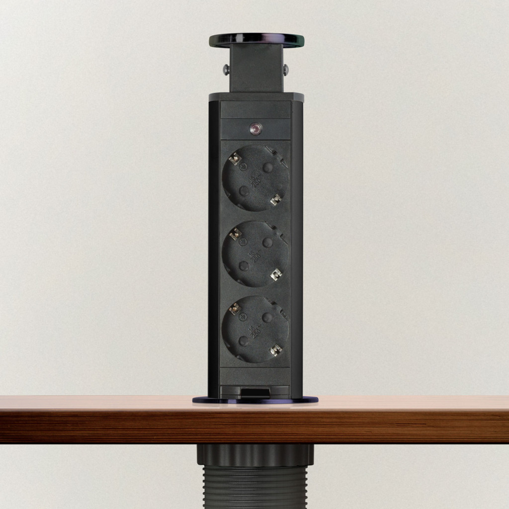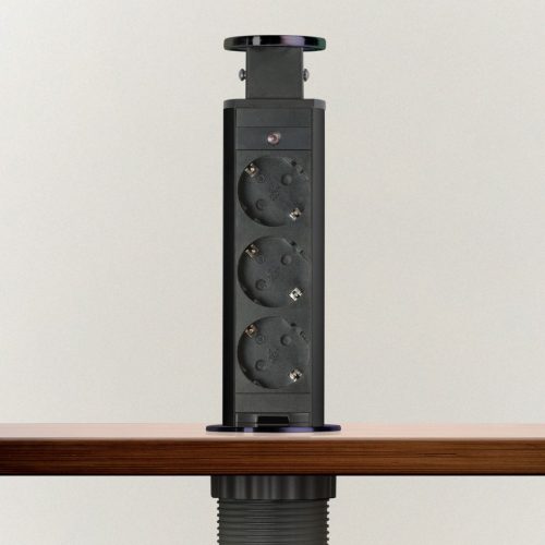Süllyeszthető elosztó irodai és otthoni felhasználásra, fém házzal, 3 db gyermekvédelemmel ellátott aljzattal. Asztala, bútora legyen mindig elegáns és rendezett, mégis funkcionális. A rejtett elosztó kiváló megoldás lehet ha már például kész konyhával rendelkezik, de nincs elegendő konnektor a kívánt helyen. Ilyenkor falvésés és villamos hálózat bővítés nélkül, remek alternatíva lehet egy rejtett elosztó. Egy mozdulat és máris rendelkezésre áll 3 szabad konnektor. Ideális lehet olyan elektromos eszközökhöz, amit nem folyamatosan használunk, kenyérpirító, vízforraló... Ha használaton kívül vannak, a "töltőoszlop" egy mozdulattal elrejthető, ezzel is megkönnyítve például a takarítást, valamint rendezett, letisztult külsőt ad a helységnek.