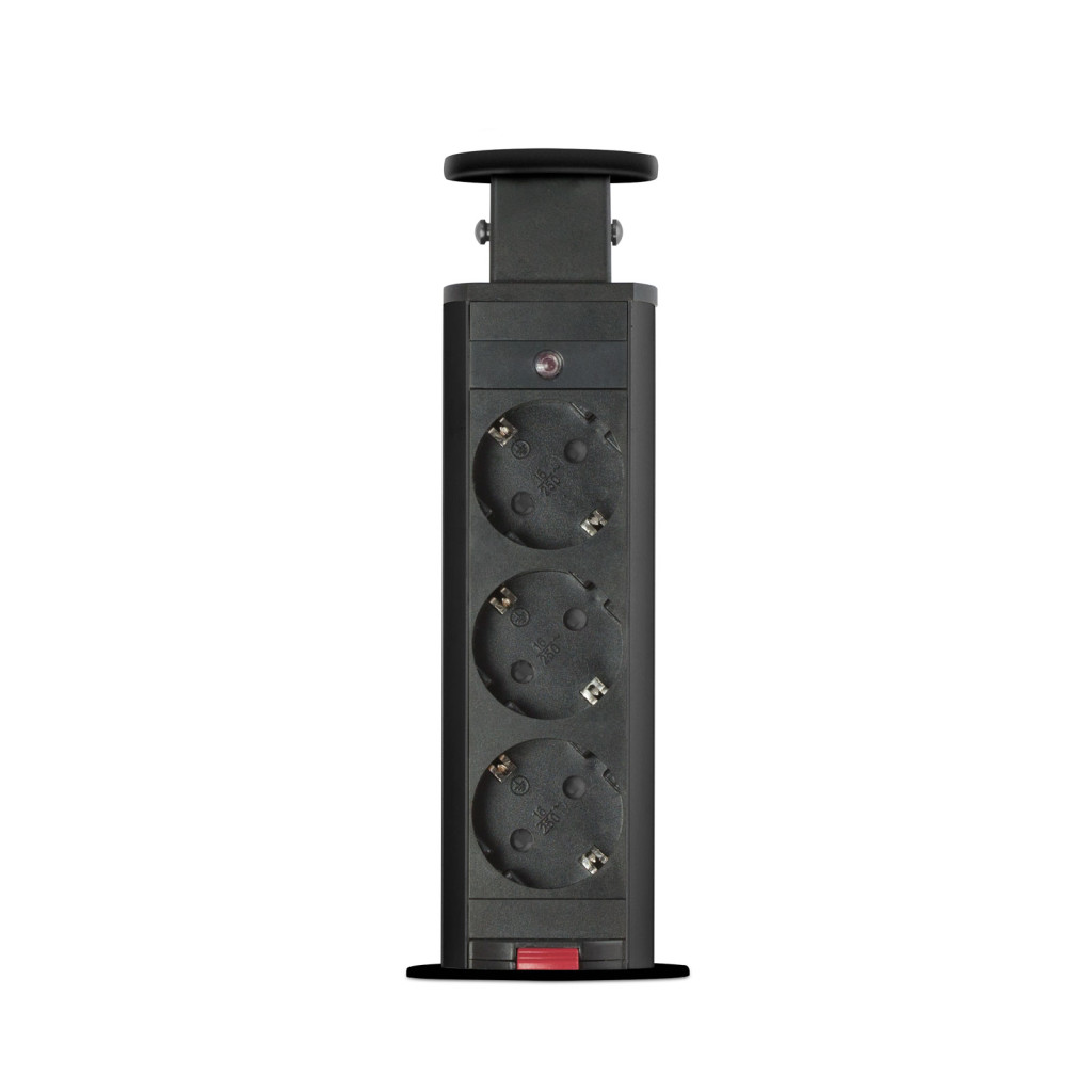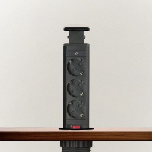 Süllyeszthető elosztó irodai és otthoni felhasználásra, fém házzal, 3 db gyermekvédelemmel ellátott aljzattal. Asztala, bútora legyen mindig elegáns és rendezett, mégis funkcionális. A rejtett elosztó kiváló megoldás lehet ha már például kész konyhával rendelkezik, de nincs elegendő konnektor a kívánt helyen. Ilyenkor falvésés és villamos hálózat bővítés nélkül, remek alternatíva lehet egy rejtett elosztó. Egy mozdulat és máris rendelkezésre áll 3 szabad konnektor. Ideális lehet olyan elektromos eszközökhöz, amit nem folyamatosan használunk, kenyérpirító, vízforraló... Ha használaton kívül vannak, a "töltőoszlop" egy mozdulattal elrejthető, ezzel is megkönnyítve például a takarítást, valamint rendezett, letisztult külsőt ad a helységnek.