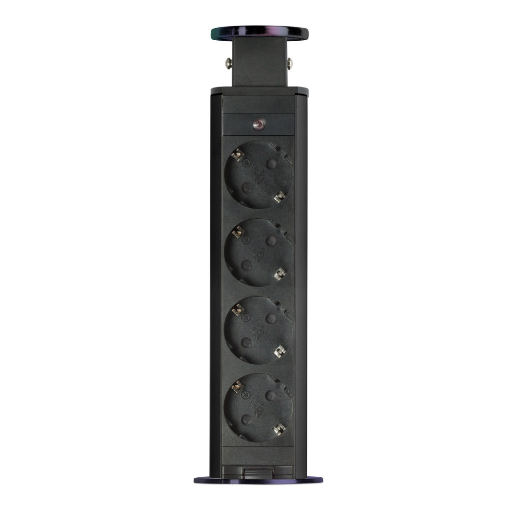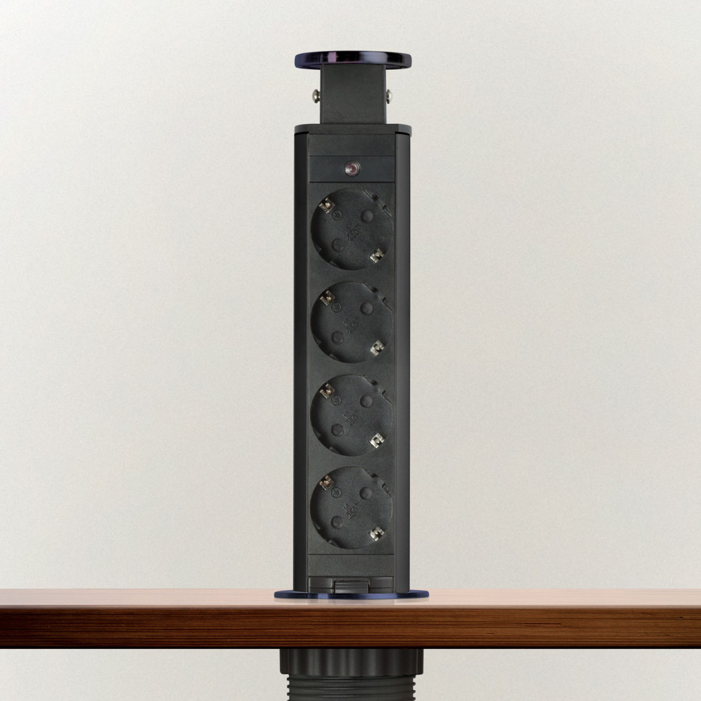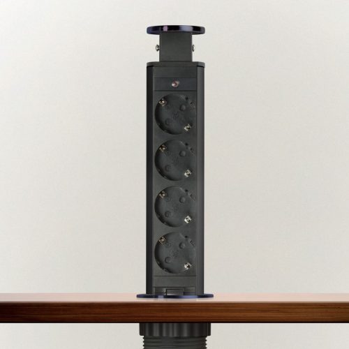 Süllyeszthető elosztó irodai és otthoni felhasználásra, fém házzal, 4 db gyermekvédelemmel ellátott aljzattal. Asztala, bútora legyen mindig elegáns és rendezett, mégis funkcionális. A rejtett elosztó kiváló megoldás lehet ha már például kész konyhával rendelkezik, de nincs elegendő konnektor a kívánt helyen. Ilyenkor falvésés és villamos hálózat bővítés nélkül, remek alternatíva lehet egy rejtett elosztó. Egy mozdulat és máris rendelkezésre áll 4 szabad konnektor. Ideális lehet olyan elektromos eszközökhöz, amit nem folyamatosan használunk, kenyérpirító, vízforraló... Ha használaton kívül vannak, a "töltőoszlop" egy mozdulattal elrejthető, ezzel is megkönnyítve például a takarítást, valamint rendezett, letisztult külsőt ad a helységnek.
