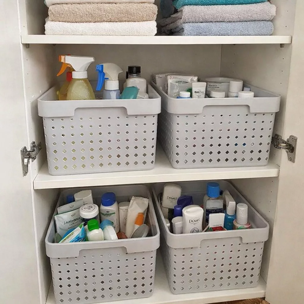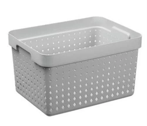 A rendetlenség a múlté ezzel a praktikus tárolókosárral. Ezzel a mutatós kosárral könnyedén áttekinthető lesz a szekrény, a kosár lyukain keresztül már láthatod a tartalom egy részét. További előnye, hogy könnyen egymásra rakhatók. Műanyagból készült. Méretek: 35,7x26,8x20,9 cm
