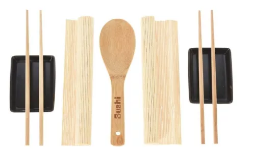 Ha kedveled a japánok nemzeti ételét és otthon is szívesen fogyasztod, akkor nem hiányozhat a konyhádból ez a kétszemélyes, 7 darabból álló sushi-szett. A készletben 2 db alátét, 2 pár evőpálcika, 2 db nagyobb tálka és egy fa keverőkanál található.
