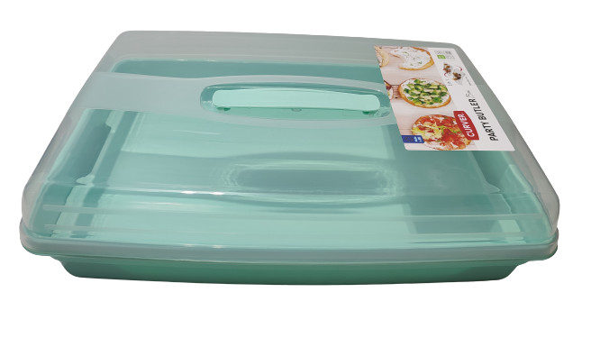 Praktikus négyszögletes ételtároló sütemény és szendvicsek tárolására és szállítására. A kézreálló fogantyú segít a szálításában, kiválóan alkalmas a családi piknikre. Ideális konyhaasztalon, hűtőszekrényben, szekrényben való alkalmazásra. Az ételtárolónak köszönhetően a sütemények és a harapnivalók hosszabb ideig megőrzik frissességüket. A termék élelmiszerrel való kapcsolatra feljogosító tanúsítvánnyal rendelkezik.