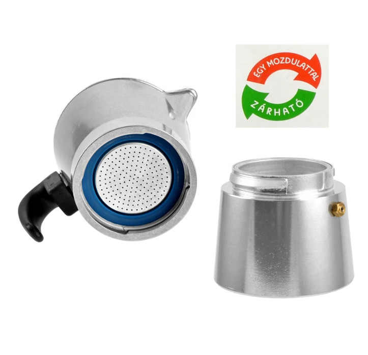 Élvezze a friss, aromás kávé ízét minden nap ezzel a klasszikus kávéfőzővel! Használható gáz-, elektromos- és kerámialapos tűzhelyen. Praktikus felező szűrőjével 2 vagy 4 adag kávé is készíthető. Mérete: 20 cm magas, 16 cm széles, 10,5 cm átmérőjű. Stílusos, megbízható és elengedhetetlen kiegészítő a kávé szerelmeseinek!