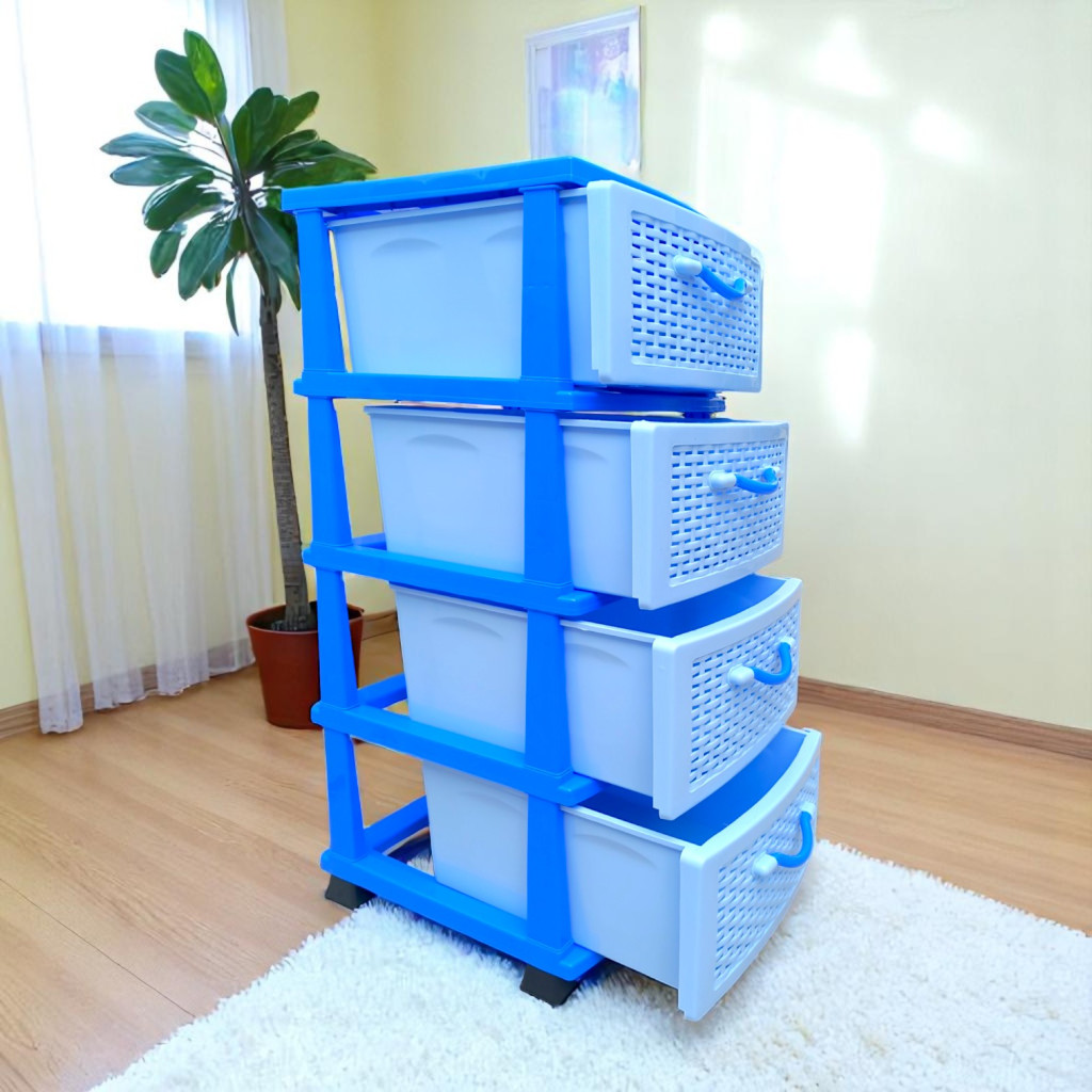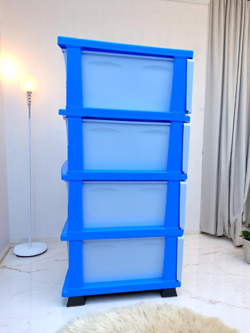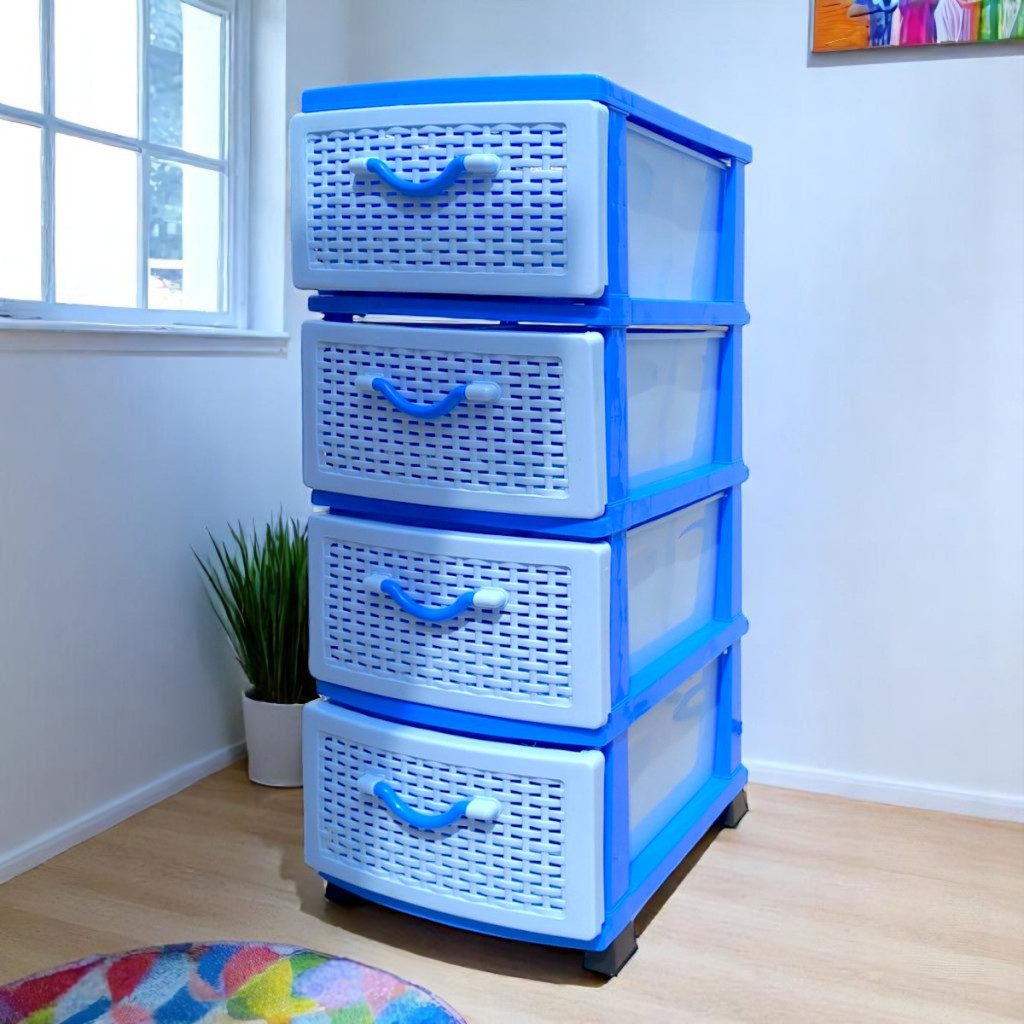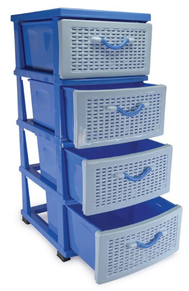 A négyfiókos szekrény sokoldalú bútordarab, mely praktikus tárolási lehetőségeket kínál. A szekrény ideális a kisebb tárgyak, dokumentumok vagy ruhaneműk rendezett tárolásához. Univerzális kialakításnak köszönhetően különféle helyiségekben használható, például a hálószobában, a nappaliban vagy az irodában. A szekrény műanyagból készült, így tartós és könnyen karbantartható, hosszú távon is kiváló tárolási megoldást nyújt.