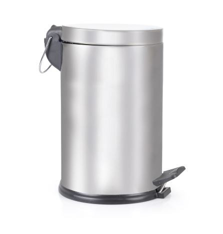 Inox kerek pedálos szemetes 5L. Kivehető műanyag vödörrel