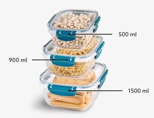 A pattintható fülekkel záródó, szilikontömítéssel ellátott tető légmentesen zár. A tárolódobozok átlátszó műanyagból készültek, így a tartalmuk felnyitás nélkül is látható. Mikrohullámú sütőben, mosogatógépben és mélyhűtőben egyaránt használhatók. BPA mentes műanyagból készült, magas minőségű DÜNYA konyhai eszközök.