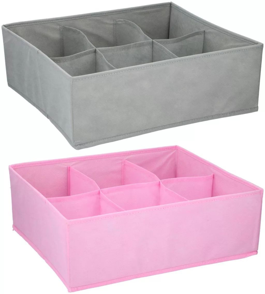 TÁROLÓ DOBOZ 40X37X17CM 6 OSZTÁSOS 2SZÍN PINK/SZÜRKE