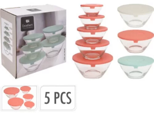 TÁROLÓ DOBOZ SZETT 5DB-OS ÜVEG 130/220/330/450/890ML 3F.