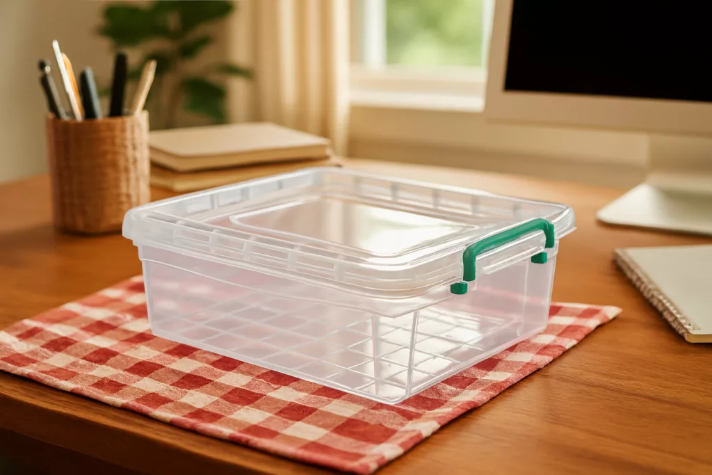 Ez a strapabíró, átlátszó műanyag tárolódoboz ideális választás otthoni, irodai vagy kreatív célú rendszerezéshez. A zöld színű oldalkapcsok biztosan rögzítik a tetőt, így a tartalom védve marad por, nedvesség vagy véletlen kiborulás ellen. Sokoldalú felhasználás: alkalmas játékok, kézműves kellékek, dokumentumok vagy háztartási eszközök tárolására. Könnyen tisztítható: sima felülete gyorsan letörölhető.