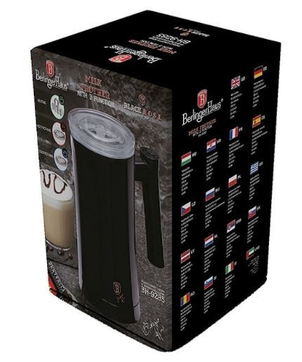 A Berlinger Haus Black Rose Collection elektromos tejhabosító kiváló minőségű rozsdamentes acélból készült, tapadásmentes bevonattal.Vízálló vezérlőpanel.Átlátszó fedő.Egyszerű használat, egy kapcsológombbal.3 választható funkció:meleg habosítás (90-120 mp) tejmelegítés (120-160 mp) hideg habosítás (kb. 60 mp).Automatikus kikapcsolás.Túlmelegedés elleni védelem.