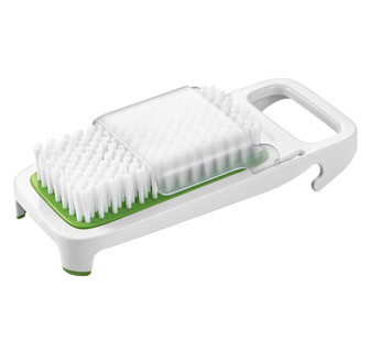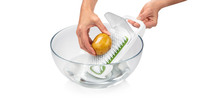 Kiválóan alkalmas zöldségek és gyümölcsök könnyű és gyors tisztítására. Stabil és biztonságos használat, lefröcskölés elleni védelemmel. A kefe egyszerűen kivehető a keretből, és önállóan is használható. Ellenálló műanyagból készül. 3 év garancia.