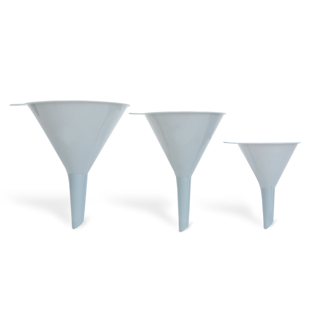 Többféle méretű tölcsérből álló szett, amely hasznos lehet minden háztartásban. Ideális lehet folyadékok üvegbe töltésekor.