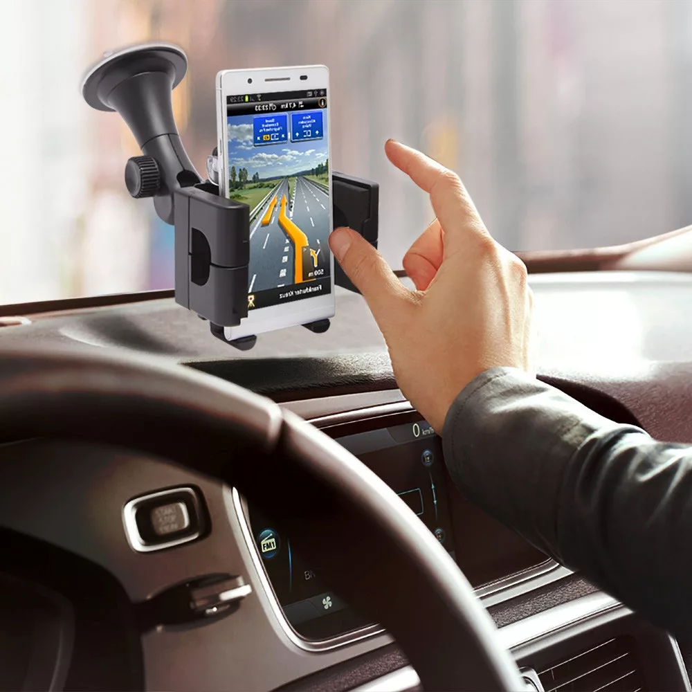 A tappancsot helyezze a szélvédőre, a rögzítő kart pedig tolja el ütközésig, ezzel rögzítve a konzolt.