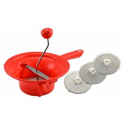Ajánljuk hal, paradicsom és egyéb zöldségek, gyümölcsök passzírozásához.A bolognai spagetti, a töltött káposzta, a paradicsomos húsgombóc akkor az igazi, ha házilag készült szósszal készül, ehhez hasonló ételek elkészítéséhez lehet segítségére ez a rozsdamentes acél betétes passzírozó. Természetesen hal passzírozására is használhatja, hogy csodás halászlevet főzhessen családjának,barátainak.A csomag tartalma 3 db különböző méretű betét, 1 db passzírozó, 1 db passzírozó tál