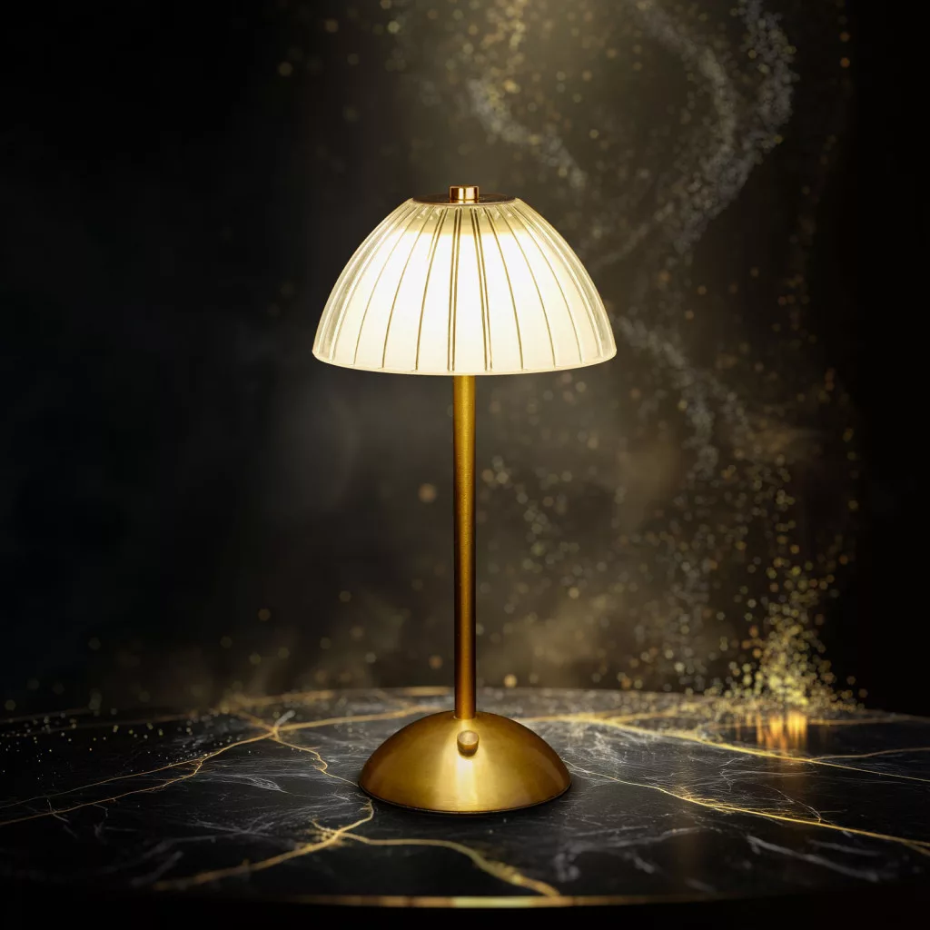 Asztali lámpa - arany színű - állítható színhőm, fényerő - akkumulátoros - USB