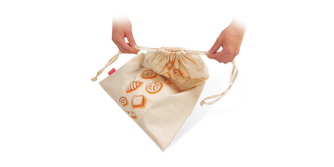 Kitűnő kenyerek, fehér és barna pékáruk stb. higiénikus tárolására. A tasak megóvja a pékárut a kiszáradástól és keményedéstől, hosszan tartó frisseséget biztosít. 100 % pamut. Húzózsinórral ellátott zár . Max. 30 °C-on mosható.