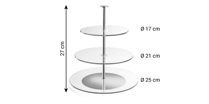 Ellenálló üvegből és fémből készült, az édességek, falatkák, gyümölcsök és has. stílusos tálalásához ajánlott. Az üveg tányérok mosogatógépben moshatóak, a többi részt ne mossa mosogatógépben.