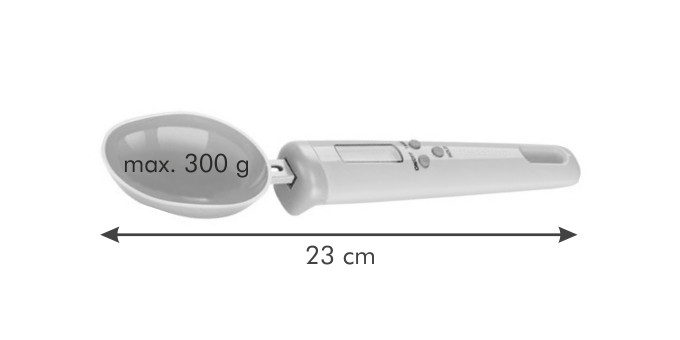 Kitűnő segédeszköz 300 g súlyig liszt, cukor, tejföl, vaj gyors kiméréséhez és adagolásához a készülő ételekbe. Utómérő funkcióval, lehetséges egyszerre több különféle élelmiszer egyidejű mérése. Eltérés 0.1 g / 0.5 g. Az ellenálló műanyagból készült levehető kanál alkalmas mosogatógépbe, a nyelet mosogatógépbe ne helyezze. A termék 3V-os lithium elemmel kapható, háztartási használatra készült.