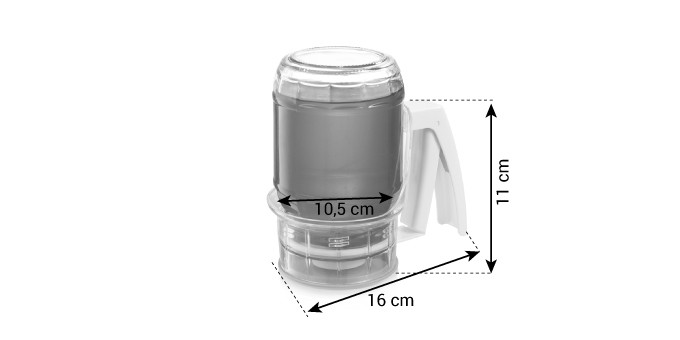 Kiválóan alkalmas a folyékony méz vagy szörp kényelmes és pontos adagolására, és azok higiénikus tárolására. Magas és alacsony fedelű, 82 mm átmérőjű általános befőttes üvegekhez alkalmas. Ellenálló műanyagból készült. Mosogatógépbe alkalmas.