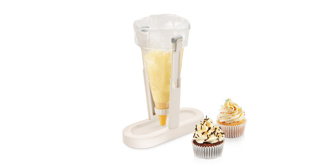 Kiválóan alkalmas a műanyag zacskó élelmiszerekkel és díszítő krémekkel történő töltésére, állítható magassággal 12 - 20 cm. Ellenálló műanyagból készült csúszásmentes kiegészítéssel. Tökéletesen tárolható. Tisztítsa folyó víz alatt.