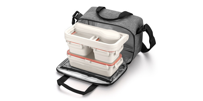 Kiválóan alkalmas meleg vagy hideg ételek tárolására, szállítására és felszolgálására utazás, munka és has. során. Az ételek tovább megőrzik kívánt hőmérsékletüket, tálalásuk kényelmes és higiénikus. A készlet 3 légmentesen záródó tároló dobozt, evőeszközt tokkal, tálaló alátétet és termotáskát tartalmaz. A tároló dobozok hűtőben, fagyasztóban és mikrohullámú sütőben is használhatóak. Ellenálló műanyagból, minőségi szilikonból és ellenálló poliészter textíliából készült hatékony hőszigetelő réteggel ellátva.