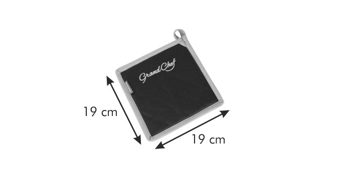 Konyhai edényfogó a forró edények biztonságos mozgatásához. 100% pamutból készült, füllel ellátva a felakasztáshoz. Ne mossa 40 °C-nál magasabb hőfokon, ne vasalja. 3 év garancia.