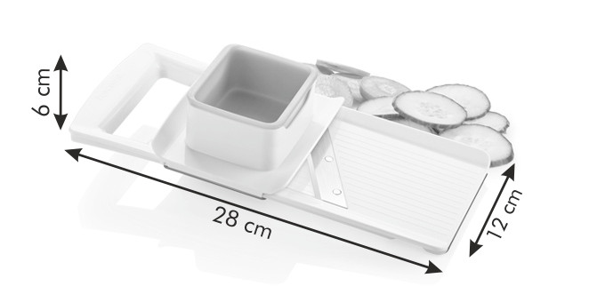 Állítható szeletelő 1, 2 és 3 mm vastagságú szeleteléshez, éles rozsdamentes acél pengével és csúszásgátló megoldással. 3 év garancia.