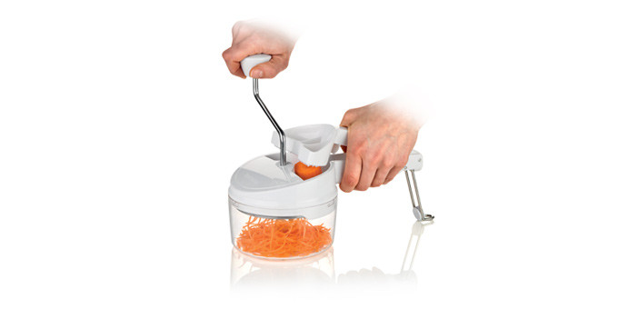 Kiválóan alkalmas az élelmiszerek gyors és könnyű reszelésére, szeletelésére. A csomagolás 3 lemezt tartalmaz, a zöldségek, gyümölcsök, dió, csokoládé, sajt és has. finom és durva reszelése és szeletelése érdekében. A lemezek első osztályú rozsdamentes acélból, a reszelő ellenálló műanyagból készült. Levehető tárolóval és csúszásgátló kiegészítéssel ellátott a biztonságos használat érdekében. A használati útmutató a csomagolás részét képezi. 3 év garancia.