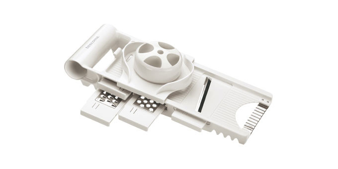 A multifunkciós reszelő kiválóan alkalmas az élelmiszerek könnyű reszelésére, szeletelésére, aprítására. A 4 cserélhető él valamint a hullámosító első osztályú rozsdamentes acélból, a többi rész ellenálló műanyagból készült. A termékhez egy biztonsági fogó is tartozik, valamint a kényelmes használat érdekében egy masszív nyél. Mosogatógépben is mosható. 3 éves garancia.