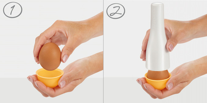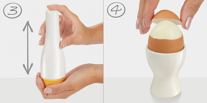 Egyenletesen megbontja a lágyra, közepesen lágyra vagy keményre főzött tojás héjának felső részét. A tojáshéj tálaláskor könnyen és egészben eltávolítható. Rozsdamentes acélból, minőségi szilikonból és ellenálló műanyagból készült. Mosogatógépbe alkalmas. 3 év garancia.